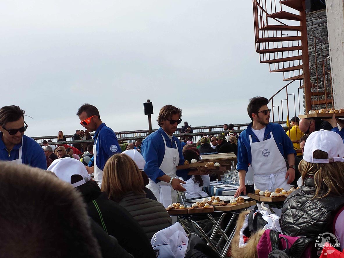 Pour vous planter le décor, la Fruitière c’est un chalet en bois clair avec une grande terrasse surplombant un massif enneigé, des serveurs hyper sympas et des plats à tomber, le tout dans un cadre de rêve.